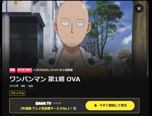 ワンパンマンのOVAを視聴する最もお得な方法は、DMMプレミアムを利用することです。